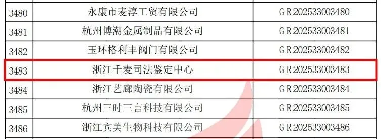 近日,全国高新技术企业认定管理工作领导小组办公室公告了浙江省认定机构2025年认定报备的11041家高新技术企业备案名单,浙江千麦司法鉴定中心位列其中。