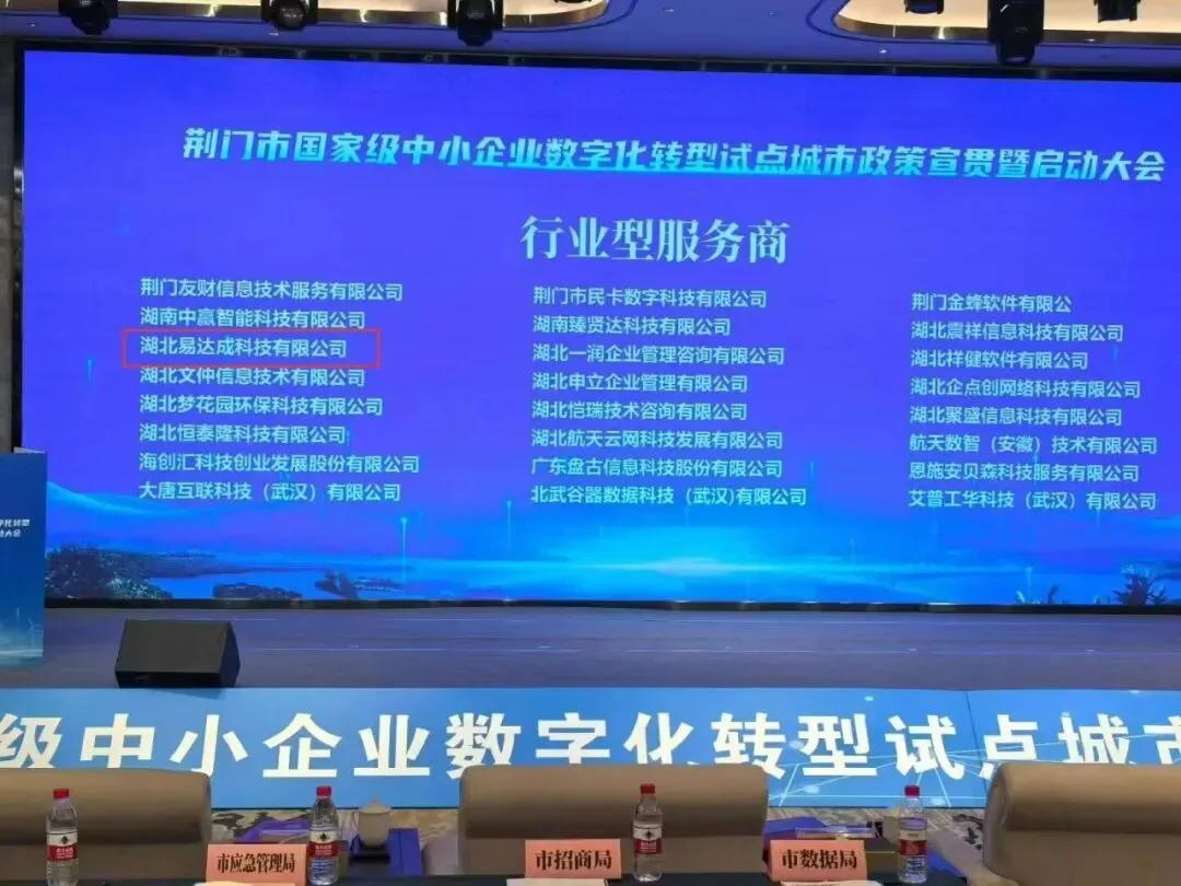 湖北易达成科技有限公司凭借中小企业数字化转型领域的专业实力与服务能力,成功入围“荆门国家级中小企业数字化转型试点城市行业型服务商”,在彰显企业数字化服务能力的同时,也为企业数字化,智能化转型升级提供了更多保障与选择。