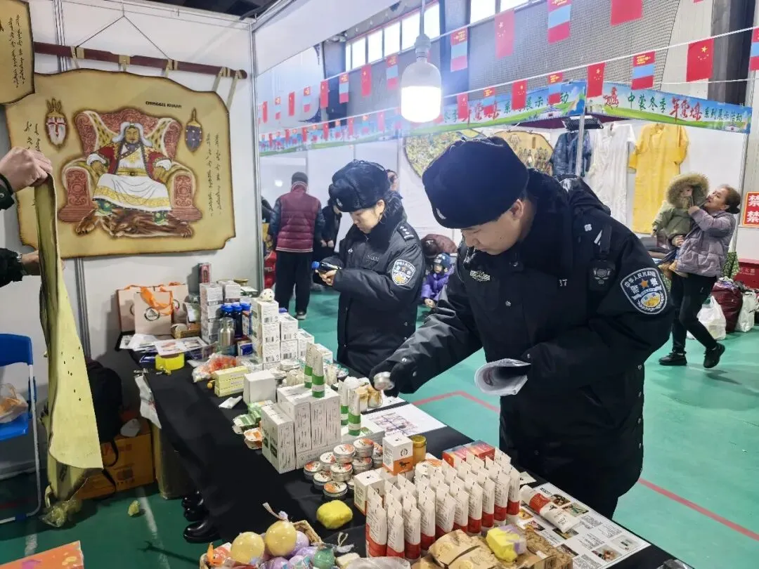 为切实保障辖区群众饮食用药安全,规范展销会食品药品经营秩序,严防假冒伪劣、过期变质等问题产品流入市场,有效防范化解各类安全风险,近日,新巴尔虎右旗公安局环境资源和食品药品犯罪侦查大队立足职能职责,组织精干警力深入辖区正在举办的中蒙展销会,开展食品、药品、保健品安全隐患专项排查工作,全力守护群众“舌尖上的安全”和用药安全。
