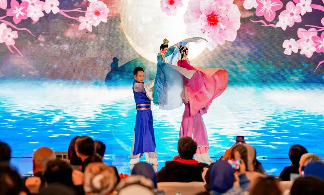 来自厦门的艺术家们为现场观众献上了一场精彩的视听盛宴。舞蹈《海风》以灵动舞姿勾勒出厦门充满诗意与活力的滨海风情;木偶戏《蝶恋花》通过精湛的指尖技艺演绎东方爱情的独有浪漫;歌仔戏《盛世中国·盛世莲》以优美的身段和婉转的唱腔,尽显闽南戏曲艺术之美;舞蹈《一线一雕一世界》和南音《直入花园》分别把非遗漆线雕、千年南音与舞蹈艺术、爵士音乐完美融合,生动展现中华优秀传统文化的时代创新和厦门多元文化交融荟萃的城市特色;歌曲《尼罗河畔的歌声》《厦门亲像一首歌》《欢乐中国年》更是在闪光灯汇聚的流动星河中,将演出气氛推向高潮。