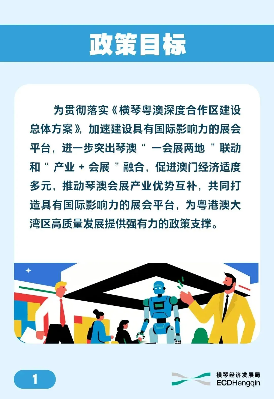?本次修訂進一步擴大了補貼範圍、明確了引導方向、加大了扶持力度,以期培育壯大合作區會展產業,推廣“一會展兩地”模式,加快琴澳兩地會展產業融合發展,引導會展項目向品牌化、專業化、國際化、數字化以及低碳化方向升級,推動更多會展企業落戶、高端人才集聚。