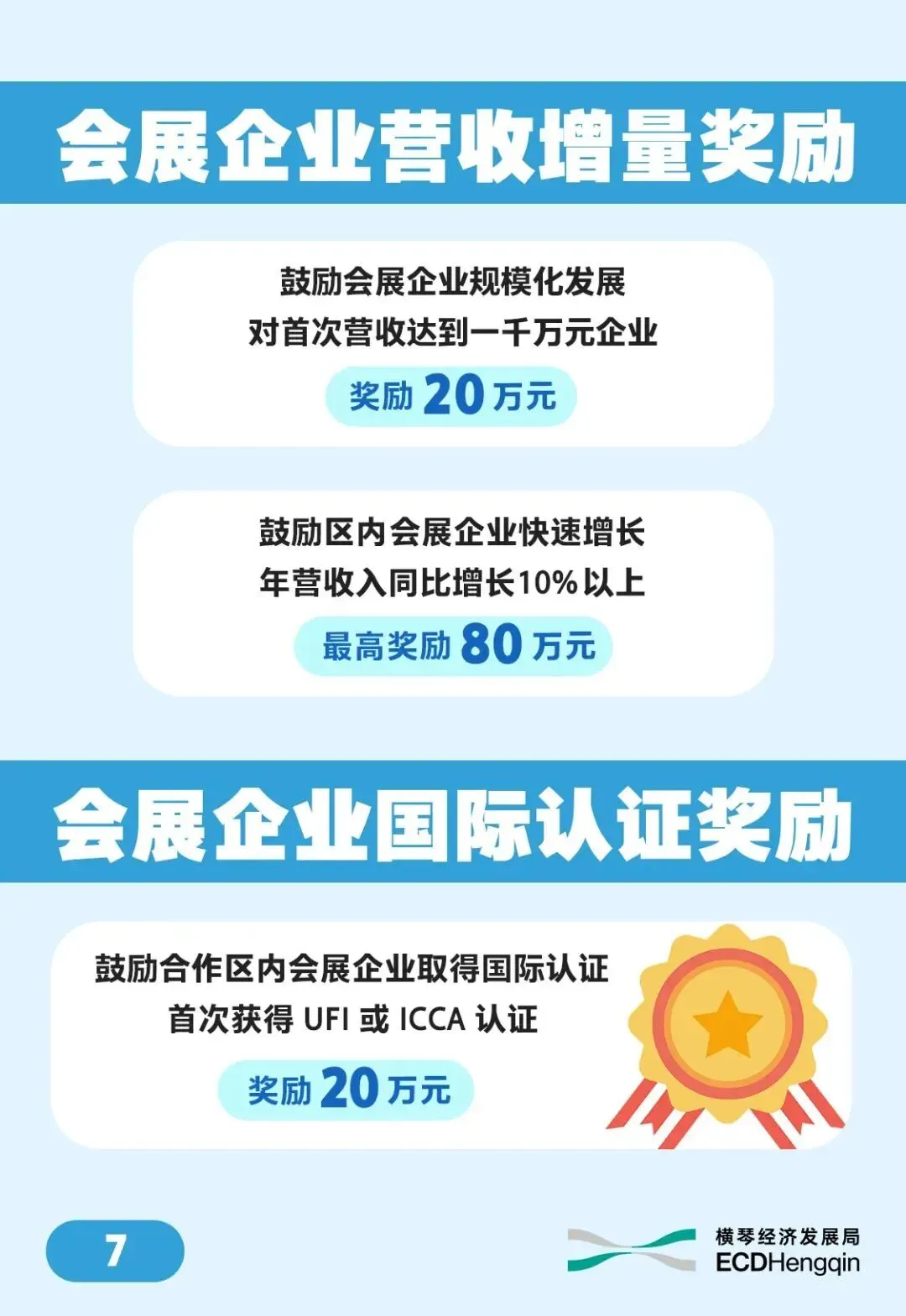 ?♀️此外,《扶持辦法》還針對會展企業營收、存量發展、各類會議提出了多項具有針對性的補貼及獎勵。對在合作區內年度營收超過1000萬元的會展企業,給予20萬元獎勵。對營收同比增長10%以上的存量企業,按其會展業務相關主營業務收入的2%獎勵,最高可獲80萬元。此外,符合相關規定條件的行業會議和國際性會議,最高可獲100萬元人民幣的補貼。