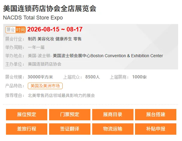 [展位预定、门票预定、展商目录、展台搭建、差旅行程、签证、翻译、物流运输、补贴申报]
