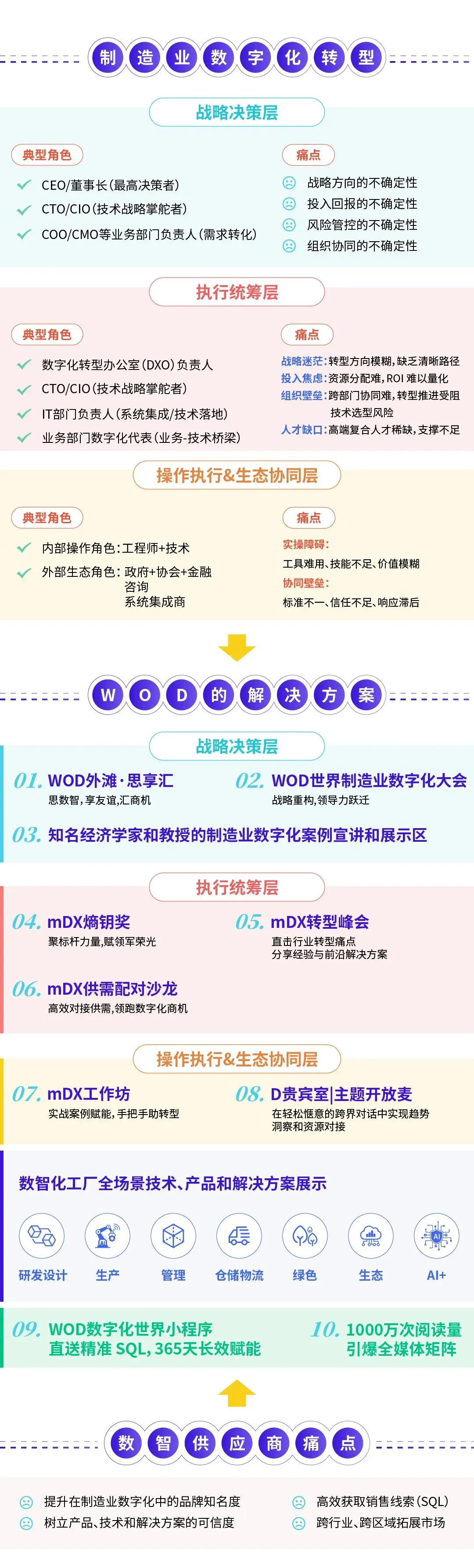 巨大的市场机遇下,数智供应商亟需一站式锁定制造业数字化全链条核心决策层,高效获取销售线索、引爆品牌知名度、构建专属生态圈。