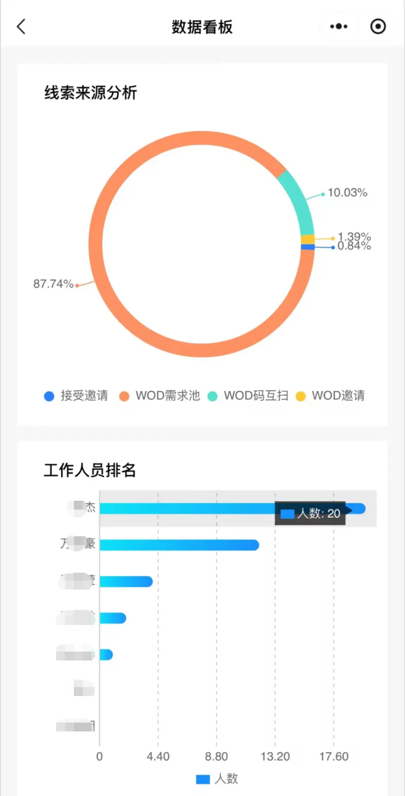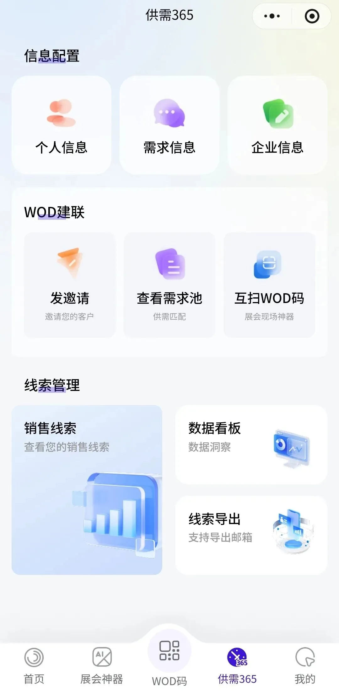 WOD 直击痛点:参展商通过小程序互扫 WOD 码,即可一键获取客户联系信息、需求详情及交流备注(精准 SQL),市场部实时汇总线索,无需人工筛选,省时高效,参展效果直观可见。