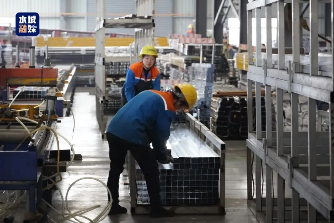 工作人员将铝型材摆放整齐。田琴 摄