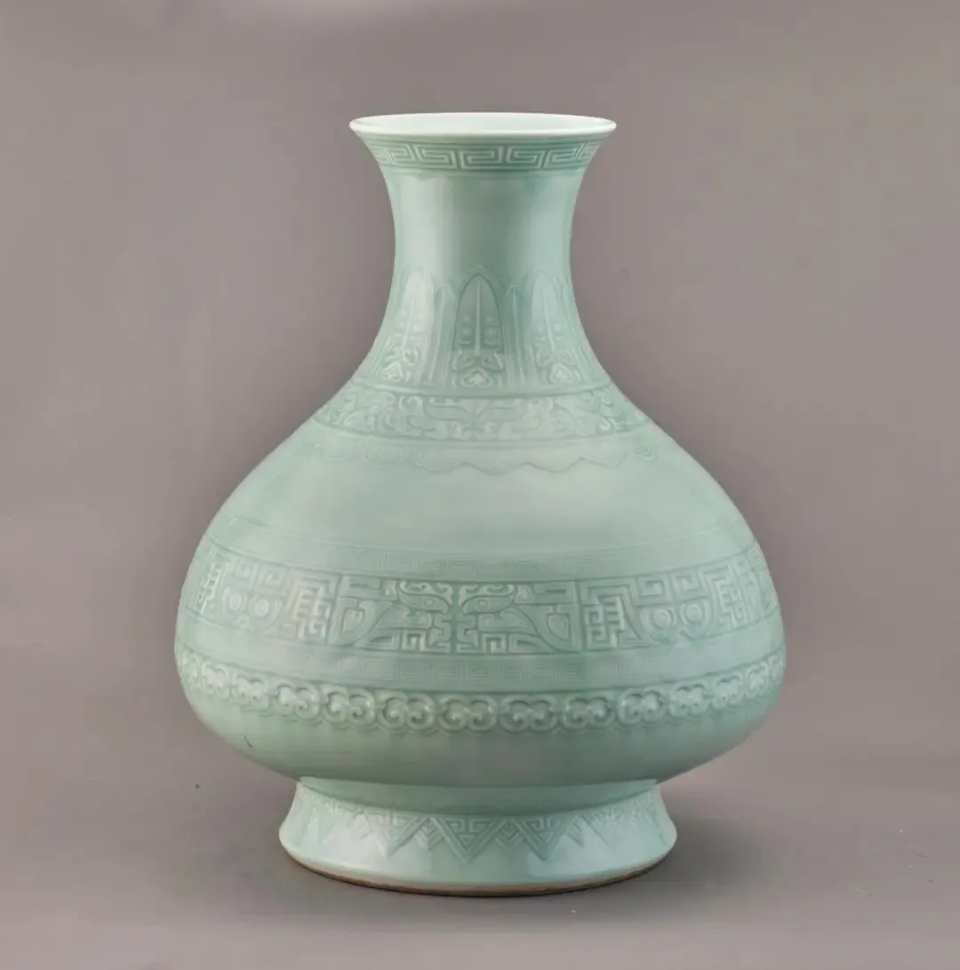 景德镇窑青釉印花仿古铜器纹瓶