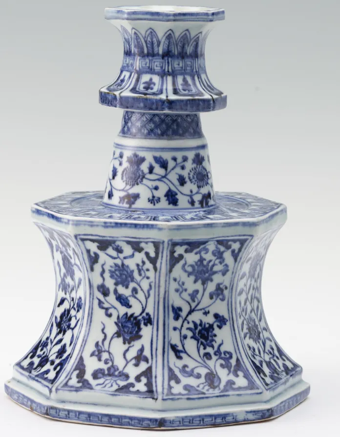 景德镇窑青花花卉纹八方烛台