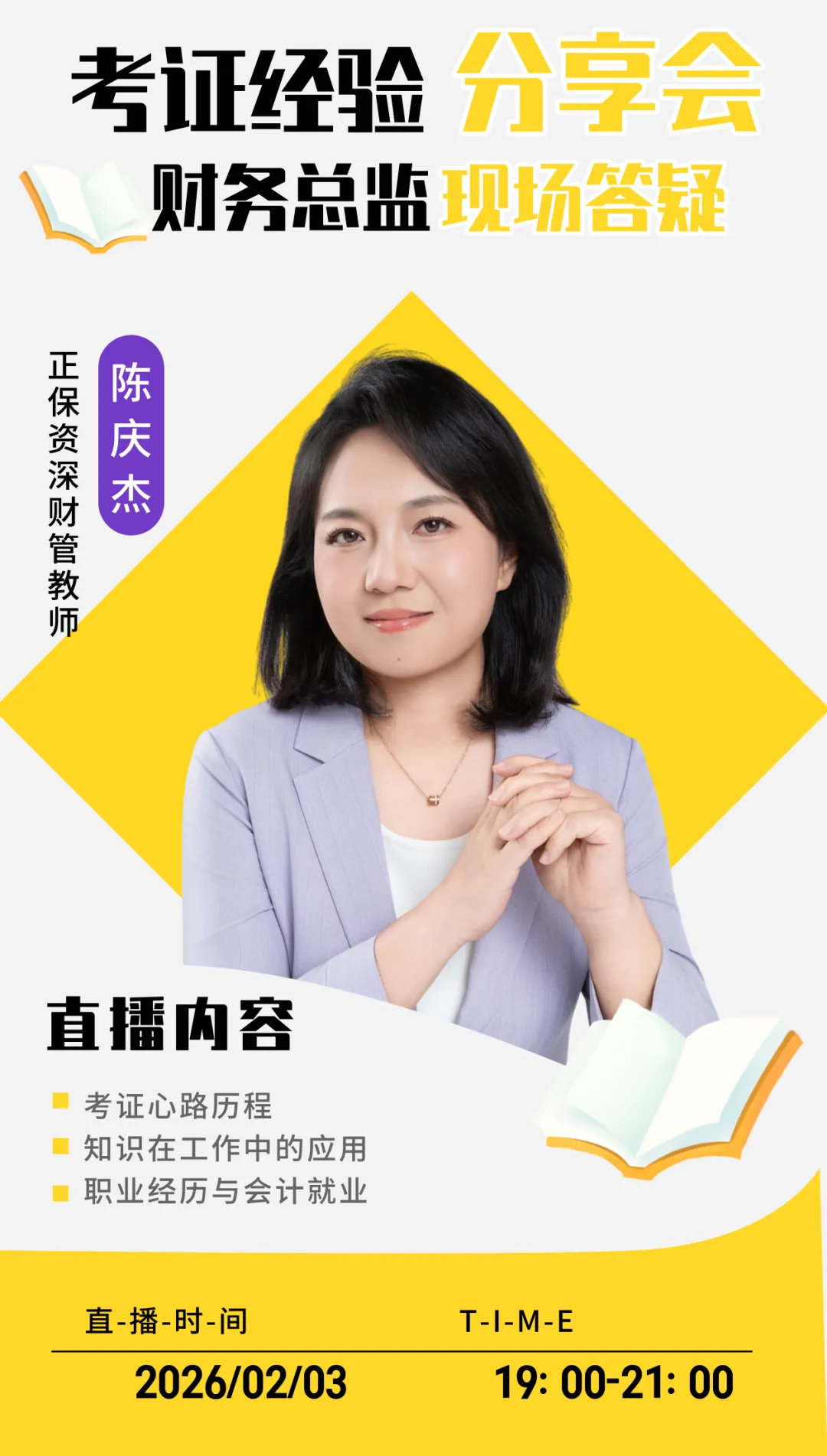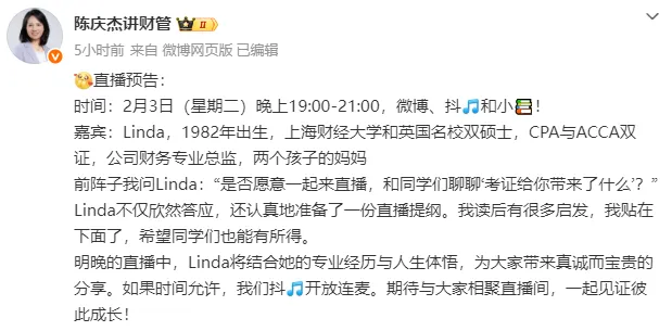 如果你也在纠结「要不要考证」「CPA和ACCA该选哪个」「考的证到底能不能用到工作里」「会计专业怎么选对职业方向」,那么陈庆杰老师这场直播一定要蹲住!