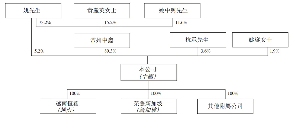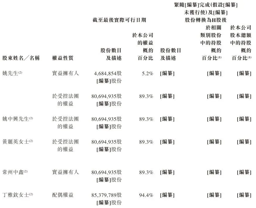 截至最后实际可行日期,常州中鑫分别由姚先生、姚中兴先生及黄丽英女士拥有73.2%、11.6%及15.2%的权益。因此,(i)姚先生、姚中兴先生及黄丽英女士各自被视为于常州中鑫持有的股份中拥有权益;及(ii)姚先生的配偶丁雅钦女士被视为于姚先生及常州中鑫持有的股份中拥有权益。