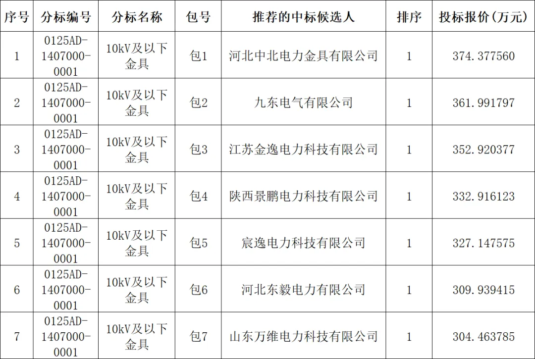 国网冀北电力有限公司2025年第二次配网物资协议库存(流标)公开招标采购项目(招标编号:JB25-HW-XYKC-ZB02LB-0125AD)评标工作已经结束。现将评标委员会推荐的中标候选人公示如下: