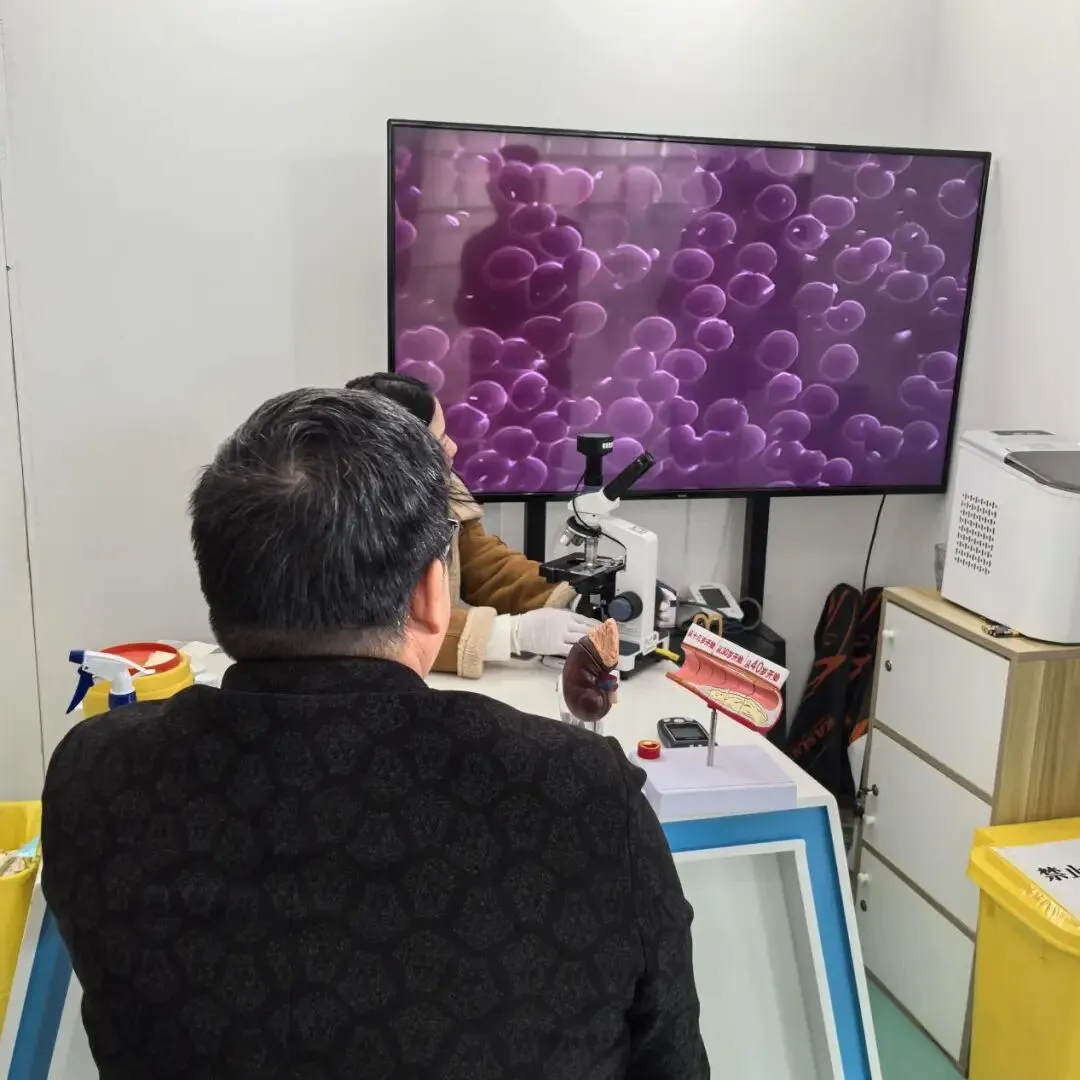 随后,实验室沉浸式体验环节极具说服力,客户亲自参与测试,直观看到:饮用焕能鲜活水前,血细胞粘稠、尿酸血糖偏高;饮用后,血细胞均匀分散,两项指标均明显下降,真切感受健康改变。