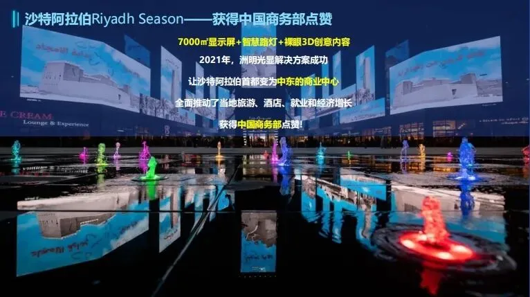 洲明以LED光显产品为载体,融合软件定义、智能控制、物联网、5G传输、XR制作、裸眼3D、高清视频等技术手段,搭载艺术设计、创意显示,满足行业指控、商业、体育、文旅、娱乐及城市规划等光显场景需求,为全球客户提供硬件+软件+内容+交互的一体化光显解决方案。