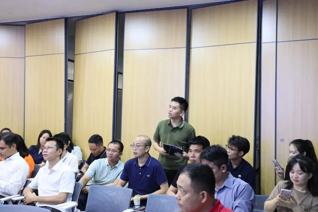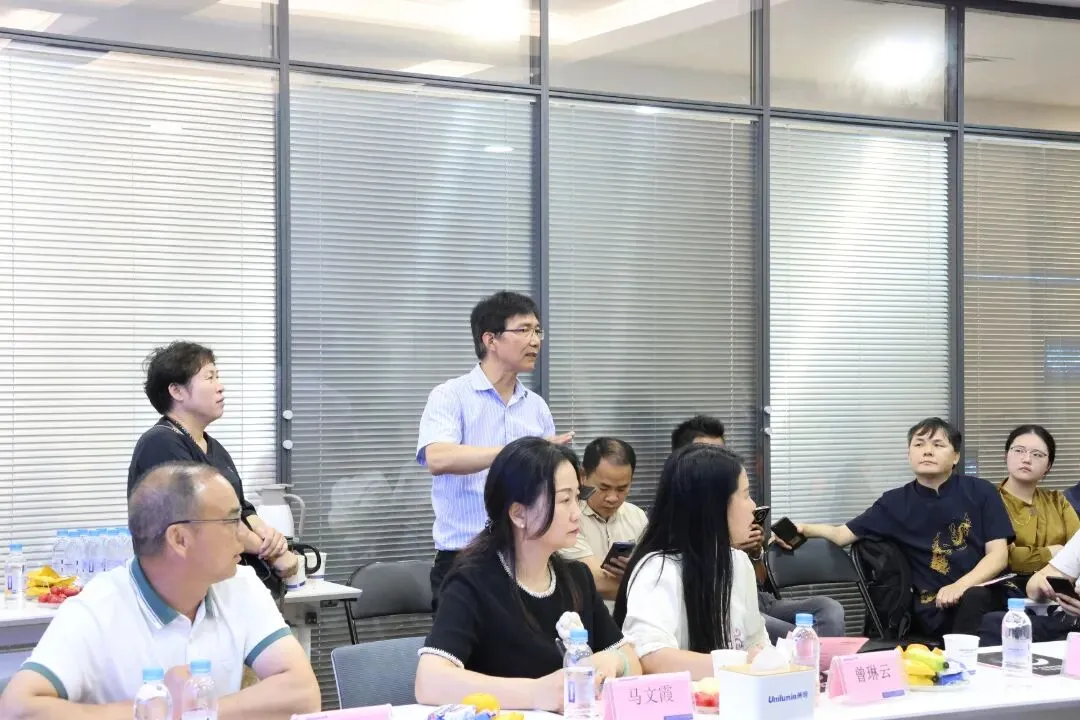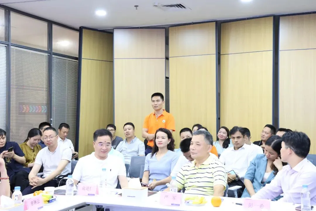 在自由交流环节,商会成员们纷纷就各自关心的问题积极提问。洲明科技集团副总裁袁道仁先生耐心且详尽地对每一个问题进行了深入解答,与会员们进行了充分的互动。大家围绕资源对接、技术创新等话题展开了热烈的讨论,共同探讨行业发展的前景与趋势,气氛十分融洽。