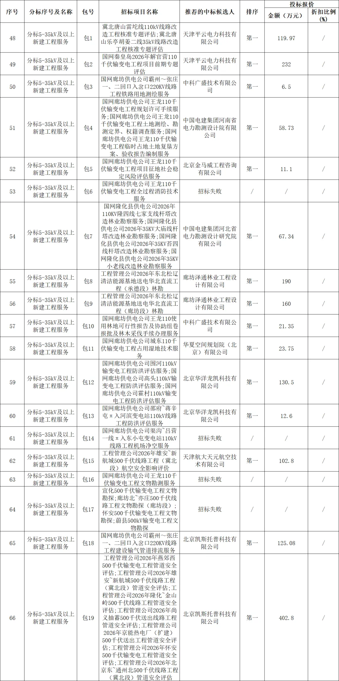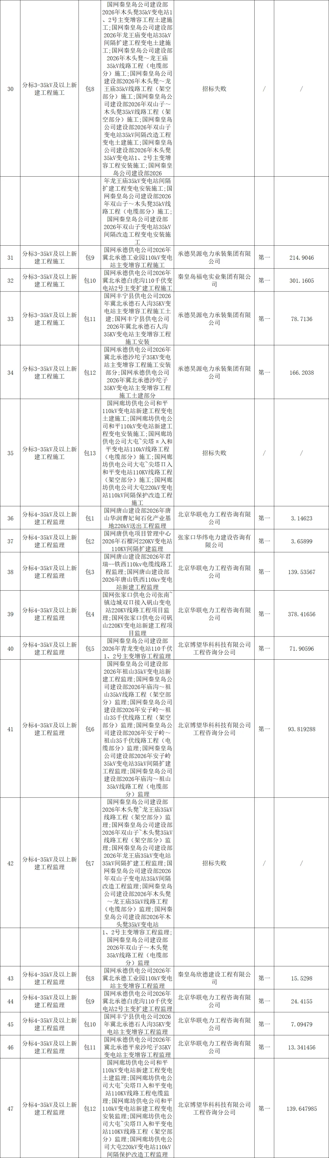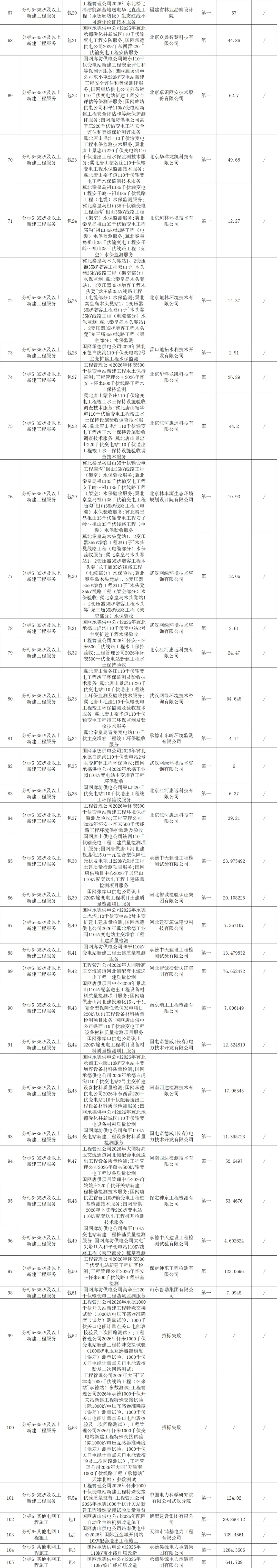 国网冀北电力有限公司2026年电网工程服务第一次公开招标采购推荐的中标候选人公示