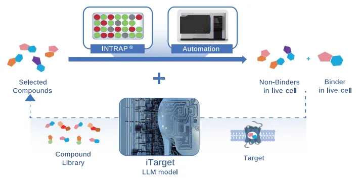 INTRAP®技术还可结合iTarget 算法平台(公司与浙大团队联合开发的前沿AI药物虚筛平台)及自动化设备,形成自动化药筛平台,极大提升了研发效率和拓展了靶点空间,为“不可成药”靶点找药提供不可替代的“干湿实验”闭环(图2)。