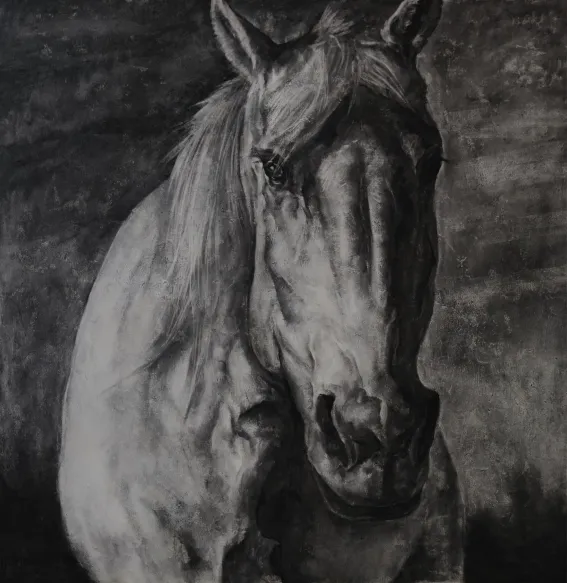 《挽歌一》是第一件我对马的肖像作品,开启了我对马的观察。看着它的眼睛时我内心无比平静,凝视的力量、沉默的力量,在此汇聚。