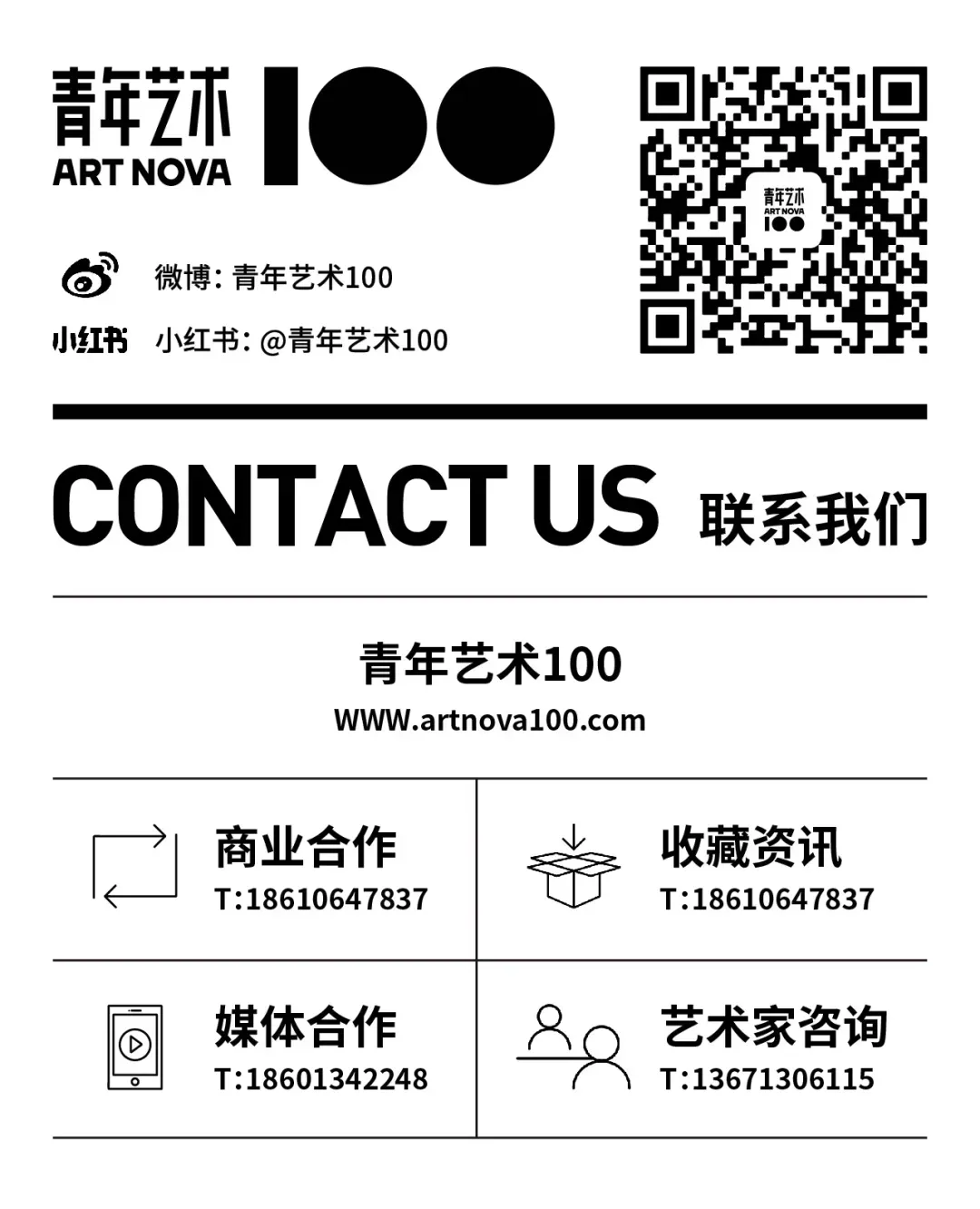 通过14年的时间,青年艺术100现已经发展完善成为集艺术展览、艺术教育、艺术出版、艺术电商、艺术跨界、海外拓展于一体的青年艺术家综合性推广平台,并成为该领域的佼佼者。平台上累积沉淀了上万名的国内外优秀青年艺术家资源,是亚洲最大的青年艺术推广平台,也为中国青年艺术持续多元的发展,对青年艺术人才的培养,对中国青年艺术及艺术家走向世界做出了重要的贡献,是国际了解中国艺术生态的重要窗口之一。