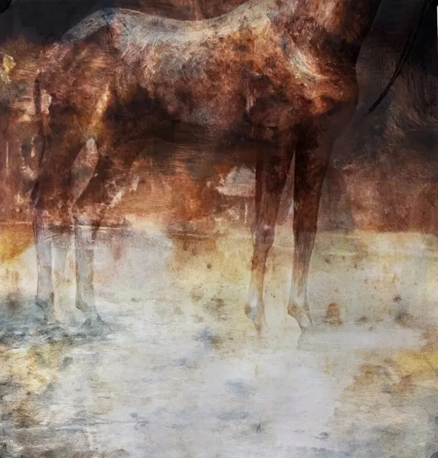 《赤影》中,“影”则消解了马的具象面孔,以背影的视觉形式,让马成为精神的投影,马的背影朝向未知,既藏着自由的本真,也象征着挣脱规训后的自我重建