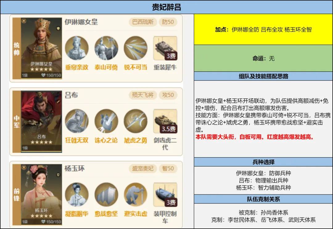2. 适配性极强,优先适配吕布体系,是下赛季吕布的最优辅助选择;同时可搭配贞德主动体系。