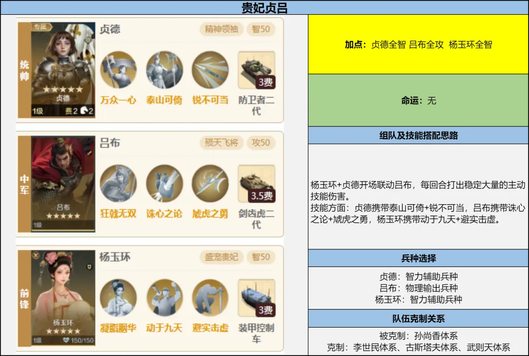 适配体系:非常适配吕布体系,是吕布的强力辅助搭档;也可搭配贞德主动体系。