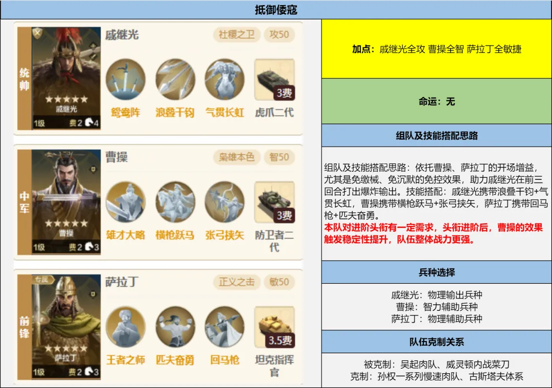 适配体系:适配各类中速输出队,可搭配郑成功、戚继光等输出英雄,提升其输出稳定性。