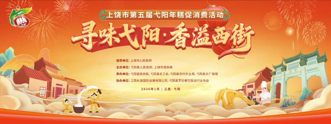 上饶市第五届弋阳年糕促消费活动,于1月30日在弋阳西街历史文化街区广场火热启幕。活动由上饶市人民政府党组成员、副市长解鸳宣布启幕,市商务局局长余小斌、副局长赵娟,弋阳县领导吴晓球、胡海飞、鲍红云等出席活动。现场汇聚了供应链及采购商代表、餐饮厨师行业协会成员等各界嘉宾,人头攒动、热闹非凡,处处洋溢着喜庆浓郁的活动氛围。