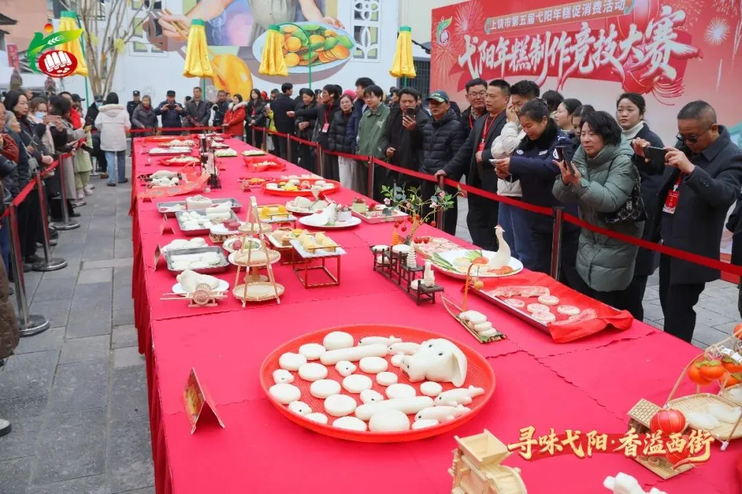 在韵味悠长的弋阳腔暖场表演中活动拉开序幕。随后,一场别开生面的弋阳年糕走秀情景剧,生动还原了弋阳年糕从非遗“三蒸两百捶”技法制作到走上现代餐桌的文化脉络,这场集民俗展演、技艺展示、产品展销与消费促进于一体的年味盛宴引得众多市民游客驻足喝彩。