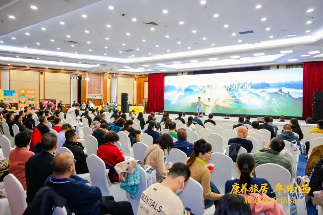 本次推介会由广西壮族自治区文化和旅游厅等多个官方单位共同主办,旨在针对北方的 “银发族” 与 “青年群体” ,精准推广广西冬季独特的康养旅居资源。桂林市文旅部门及重点企业代表携精品线路与特色文创,参与了北京、哈尔滨两站活动。