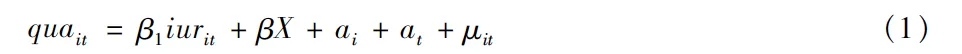 其中,qua 为企业创新质量, iur 表示产学研合作,X 表示本文所引入的一系列企业层面和地区层面的控制变量,ai表示个体固定效应,at表示时间固定效应,μit表示随机误差项。