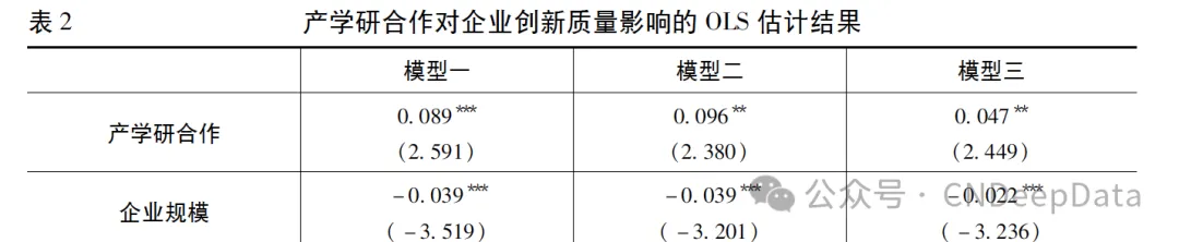 产学研合作对企业创新质量的影响。本文检验产学研合作对企业创新质量影响的基本回归模型如下: