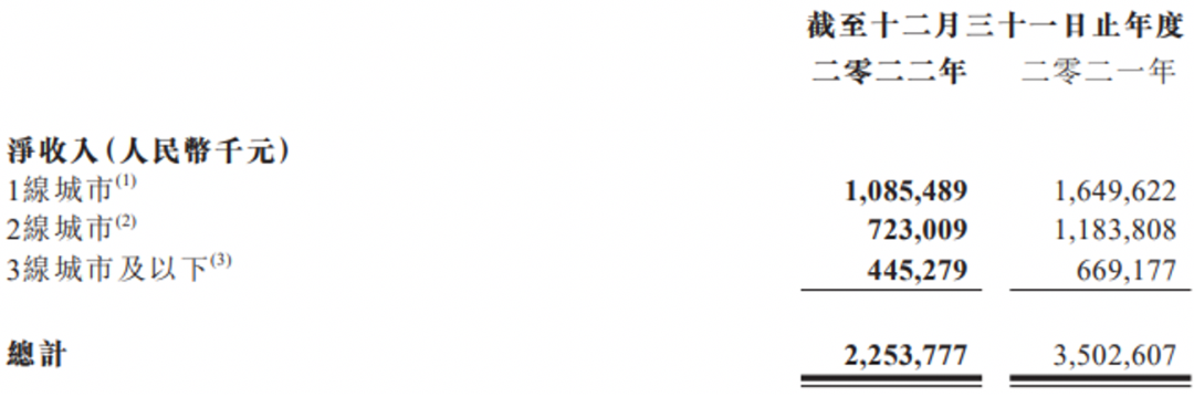 2022年呷哺呷哺餐厅按地区划分净收入情况(千元)