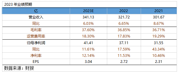 鉴于除大麦意外的原材料都已有所下降,预计2023年公司毛利率同比继续出现改善,在线下活动恢复情况下,运营费率或将有所提升。综合预计公司净利润41.41亿,同比增长11.61%。