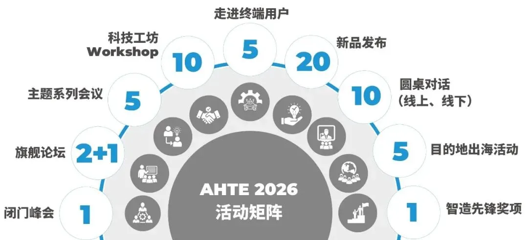 展会同期,AHTE 2026还将通过闭门峰会、旗舰论坛、科技工坊Workshop、主题系列会议、新品发布及A+ Awards智造先锋奖等20+同期活动,聚焦汽车零部件、新能源三电系统、医疗器械、电子、家电、低空飞行器、具身智能等多行业装配与测试解决方案,畅谈前沿技术、设计与创新、降本增效、崭新应用及行业政策等,为您提供多维度的信息洞察与交流契机