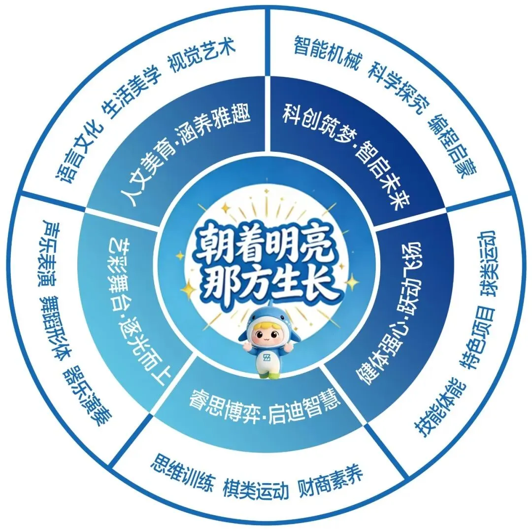 在会展南小学,我们始终相信:教育不仅是传授知识,更是点燃好奇、唤醒潜能的过程。2025-2026学年,我们以“课程蝶变”为引擎系统构建课后服务选修课程体系,以“课程育人,因需而设”为核心理念,精心打造出5大课程板块、逾90门特色课程,宛若一幅徐徐铺展的“素养成长地图”。从科创智造到人文美学,从健体强心到艺术表达,再到思维博弈。我们精心绘就的这张“课程图谱”,每一门课程不是学科的简单叠加,而是基于学生发展核心素养的重新整合与深度孵化。这里不仅是课堂的延伸,更是一个支持个性选择、赋能潜能生长的“课程能量站”。我们期待,每一个孩子都能在丰富的课程光谱中,找到属于自己的那一束光,在真实的学习体验中构建知识、锤炼能力、涵养品格,让课后时光,成为一粒粒蓄满生命力的未来种子。
