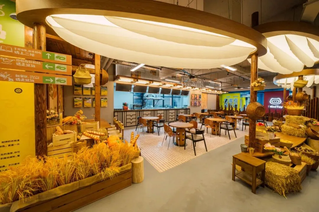 在这里,游客可沉浸观看国内首部稻作文明主题原创绘本剧,体验“从一粒种子到一片金黄”的生命历程,也可参与亲子共演工作坊,在专业指导下尝试微型剧目创排。手作市集提供稻秆编织、古法米食制作等互动项目,让湖湘农韵在指尖上流转。餐饮区推出以稻米为核心的创意轻食,从“稻田虾米粉”到“米浆冰激凌”,让稻作文化在味蕾中延续。户外“稻田聚场”则随四季变换场景——春日农耕、夏夜音乐会、秋收艺术节、冬季暖灯会,让自然场域成为持续更新的展演舞台。项目打破传统观演模式,推动游客从“参观者”向“参与者”甚至“共创者”转变,在互动中深化对湖湘农耕文化的感知与认同。