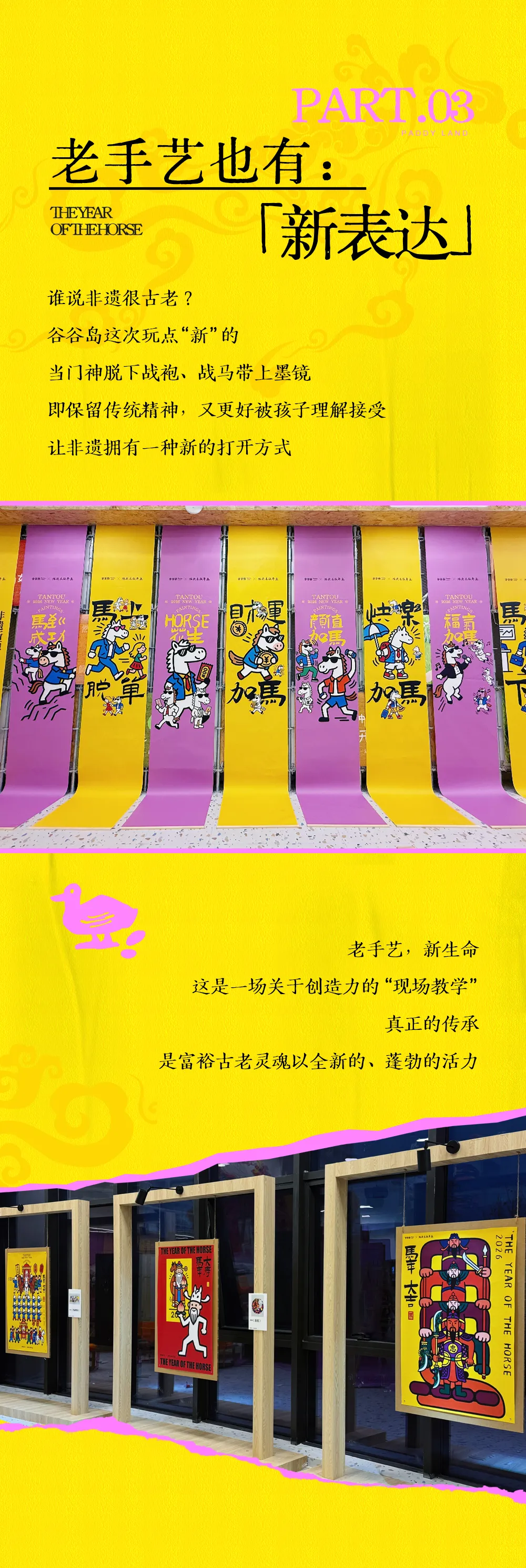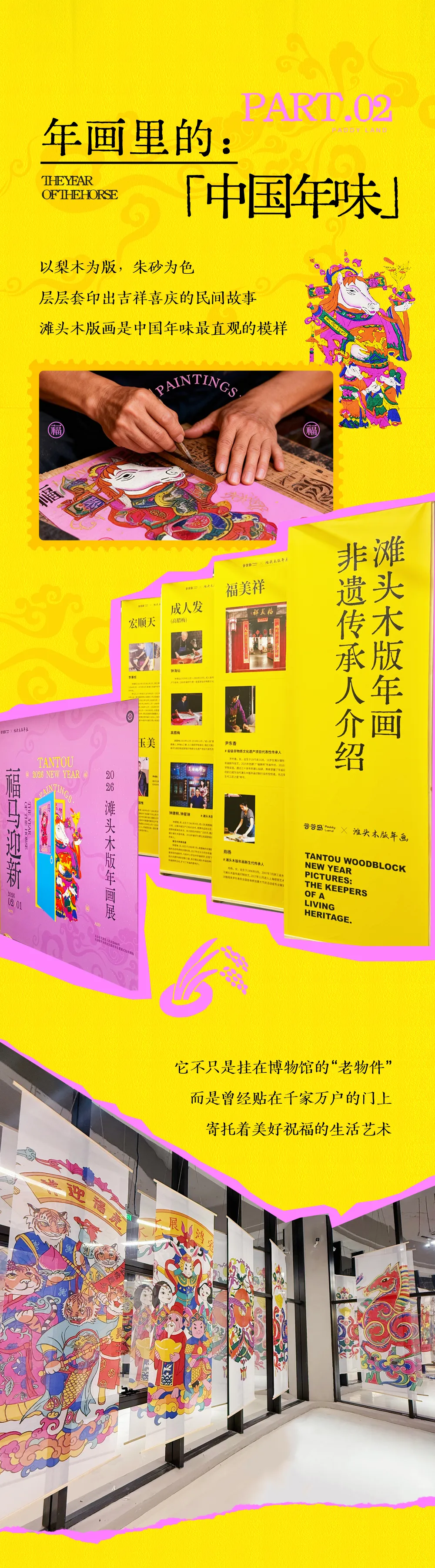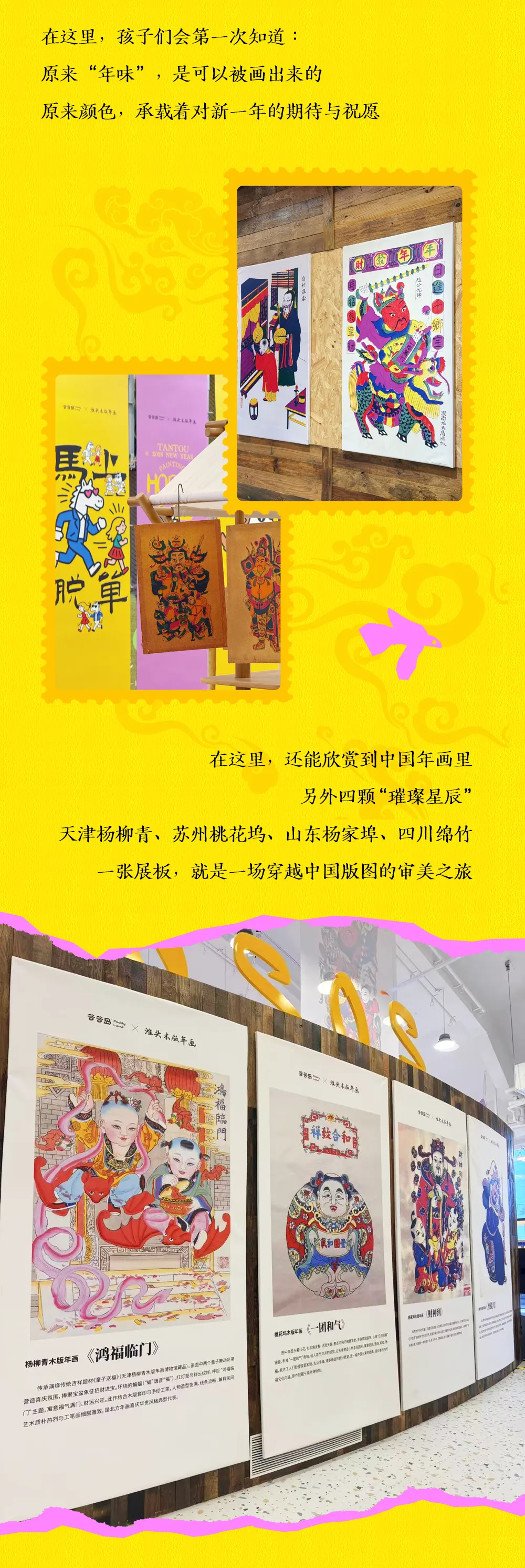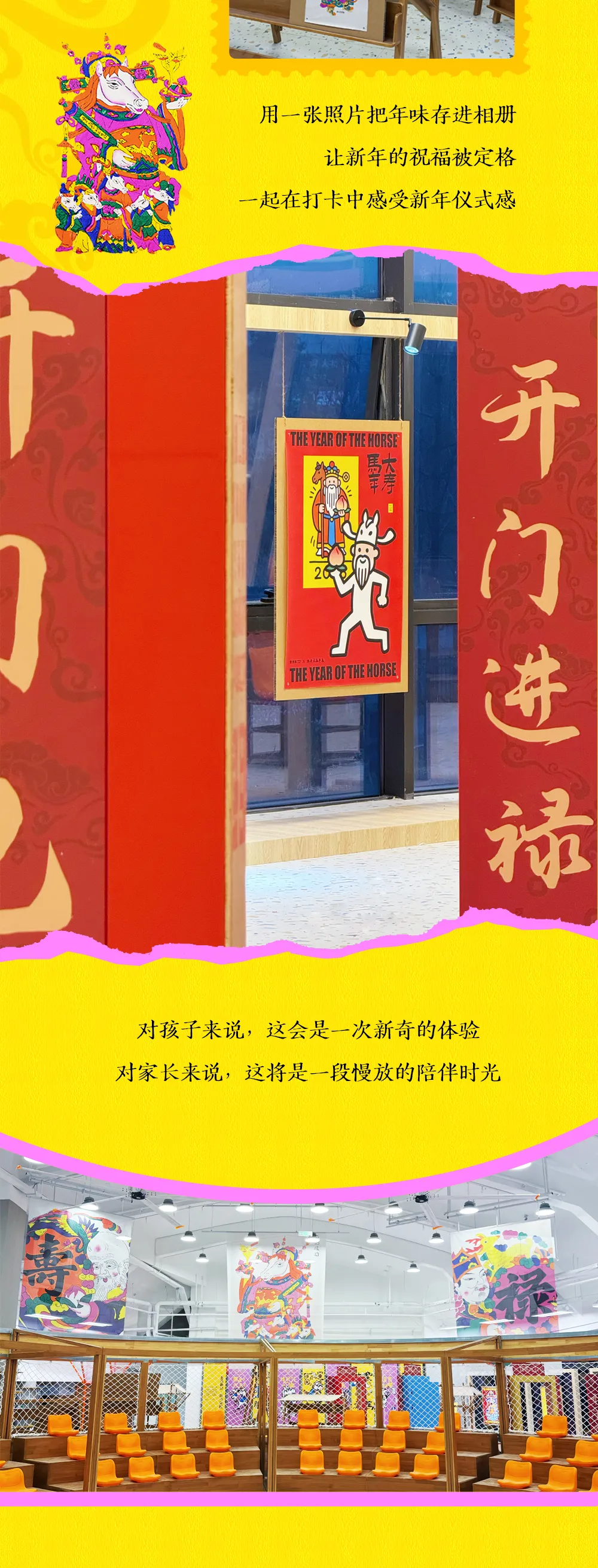 2月1日—3月3日试运营期间,项目携手国家级非遗传承人及隆回县非遗保护中心,同步推出“福马迎新——2026滩头木版年画展”。展览围绕十二生肖、廉政主题、传统门神、吉祥题材、致敬经典五大题材板块,展出数百幅精品,让古老年画焕发出迷人的潮流活力。同时展览设有互动体验区,以“非遗+亲子+潮玩”理念打造沉浸式文化场景,推动非遗在现代生活中的活化传承,构建一场跨越时空的文化对话。