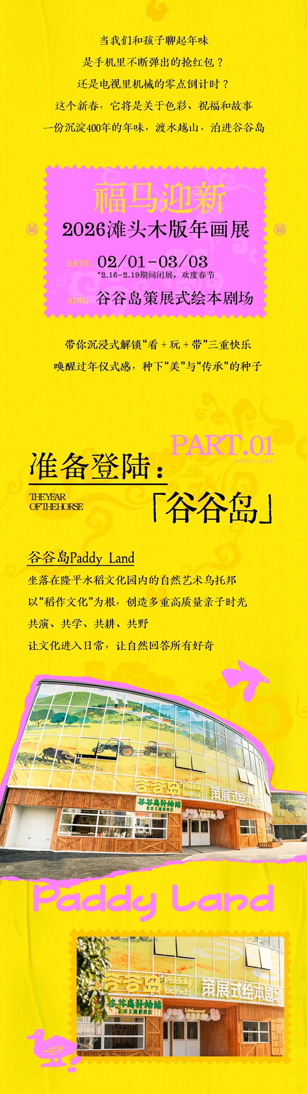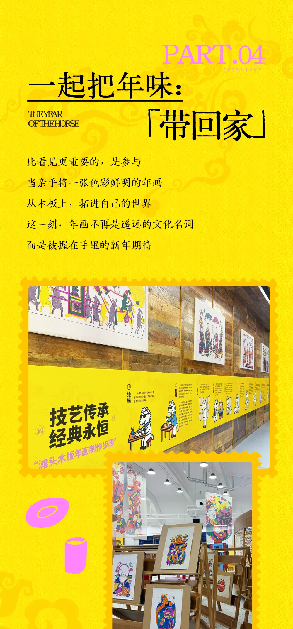 2月1日—3月3日试运营期间,项目携手国家级非遗传承人及隆回县非遗保护中心,同步推出“福马迎新——2026滩头木版年画展”。展览围绕十二生肖、廉政主题、传统门神、吉祥题材、致敬经典五大题材板块,展出数百幅精品,让古老年画焕发出迷人的潮流活力。同时展览设有互动体验区,以“非遗+亲子+潮玩”理念打造沉浸式文化场景,推动非遗在现代生活中的活化传承,构建一场跨越时空的文化对话。