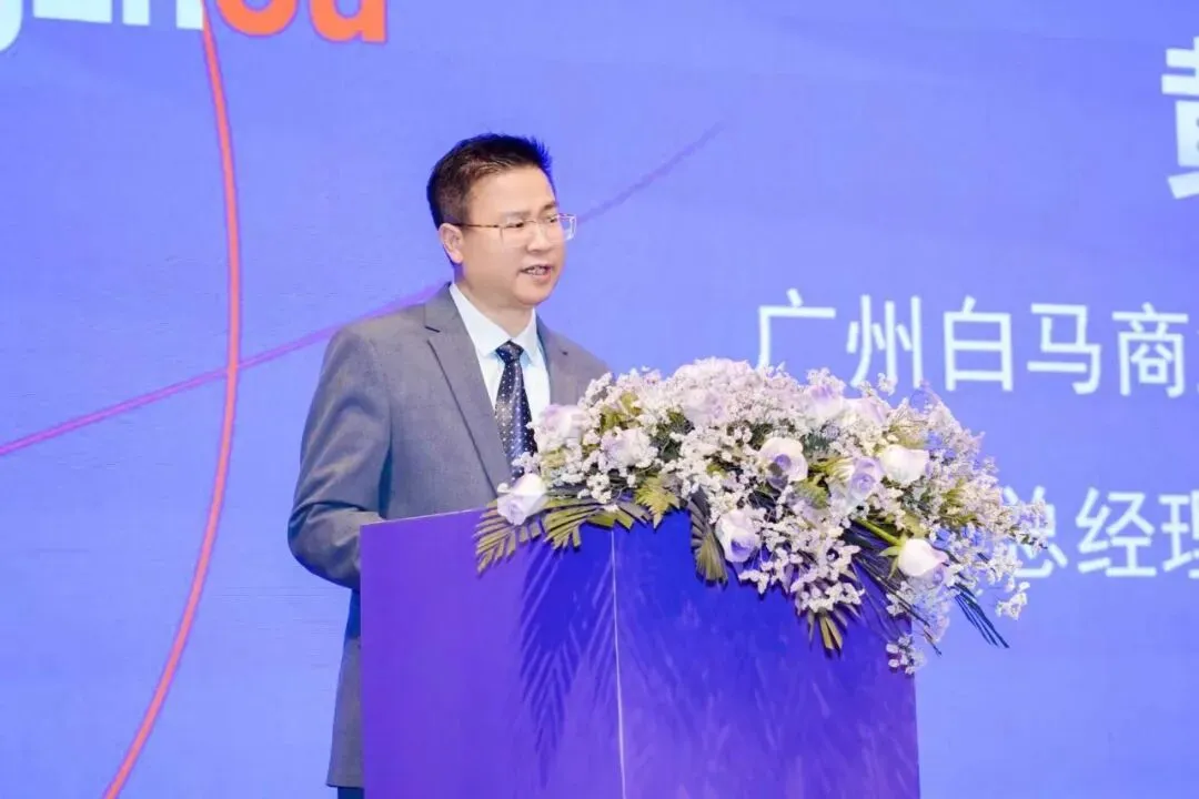 十三行国际会展(广州)有限公司总裁龚汉强,广州白马商业经营管理有限公司总经理、党支部书记黄秋权作为联合主办代表发言,分享了专业市场与展会平台深度融合的创新实践。他们表示,面对新时代赋予的历史使命,各大专业市场必须更加紧密地抱团协作、更加主动地开拓进取、更加坚定地担当作为,打破物理边界与资源壁垒,将分散的流量转化为集聚的势能,共同为产业发展注入新动能。