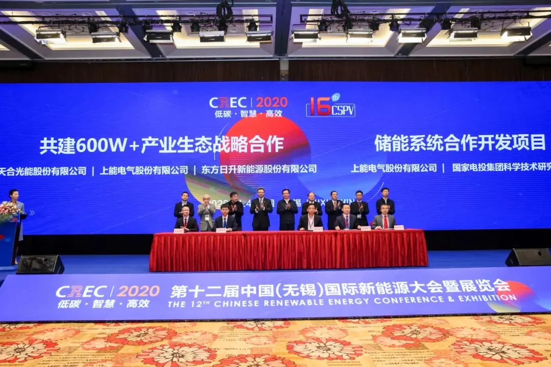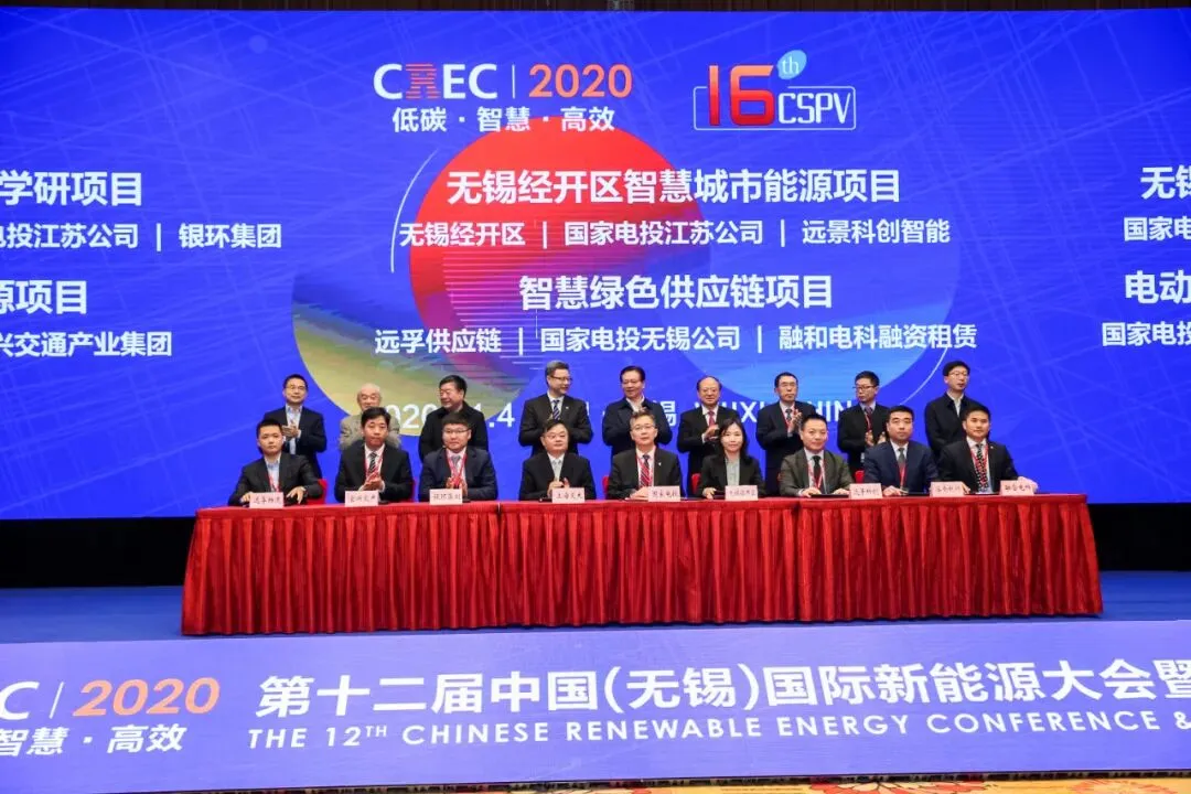 11月4日上午,由中国国际商会、无锡市人民政府主办的“第十二届中国(无锡)国际新能源大会暨展览会(CREC2020)”在无锡君来世尊酒店隆重开幕。开幕式现场,共有23家单位就12个重大项目举办签约仪式,累计总额约人民币88.5亿元。
