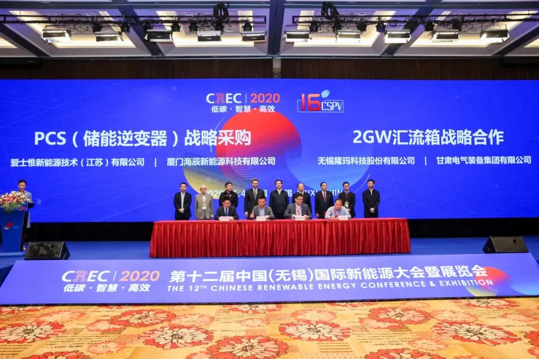 在签约仪式上,国家电投集团江苏公司和无锡公司共有6大项目签署合作协议,包括氢能动力船舶产学研项目、无锡经开区智慧城市能源项目、无锡硕放智慧机场项目、宜兴交通能源项目、智慧绿色供应链项目、电动汽车及充换电站项目,签约总额50亿元;国家电投新能源领域核技术综合应用、清华大学卢强院士压缩空气储能2个重大项目也在无锡落户;上能电气则与国家电投集团科学技术研究院达成了储能系统开发合作,还与天合光能、东方日升签署了《共建600W+产业生态战略合作协议》,;爱士惟、隆玛分别与合伙伴签署了PCS(储能逆变器)战略采购和2GW汇流箱战略合作协议。