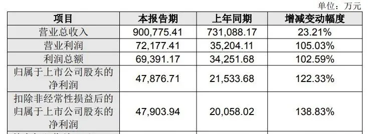 润丰股份:净利润超10亿元,同比翻倍