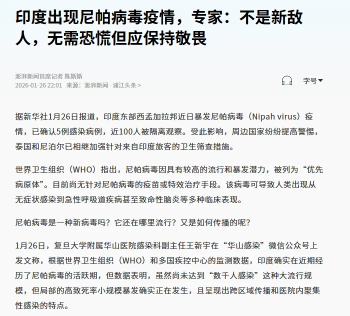 如此遥远的距离,已构成一道天然的安全屏障。斋普尔本地及周边地区从未出现任何尼帕病毒病例报告,城市的公共卫生系统也在正常高效运转。