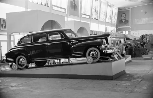 展馆正中央还陈列了当时苏联用于公务的ZIS-110轿车。这款车型在外形上与美国战前的Packard 180有相似之处。该车从1945年生产至1959年,总量不算大,其中包括为高级官员专门加固的装甲型号。