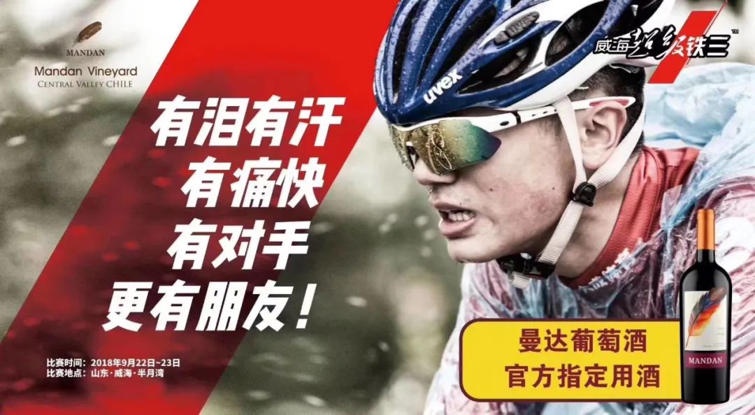 曼达·羽葡萄酒还赞助了体育赛事。该品牌是2018山东威海铁人三项世界杯的官方指定用酒,品牌LOGO在赛事中全场露出。有效提升了产品的美誉度。