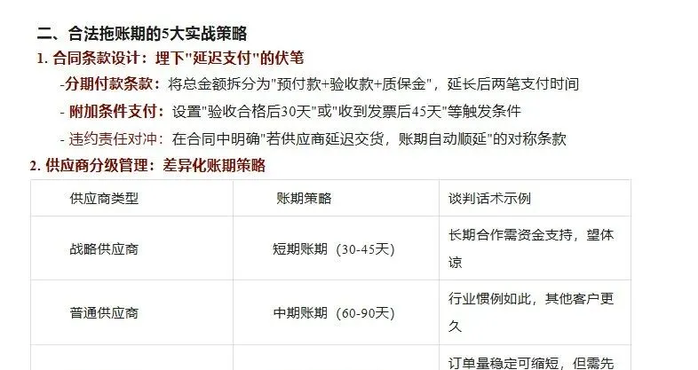 1. 资金周转优化:延长账期可释放现金流,用于核心业务或应急储备