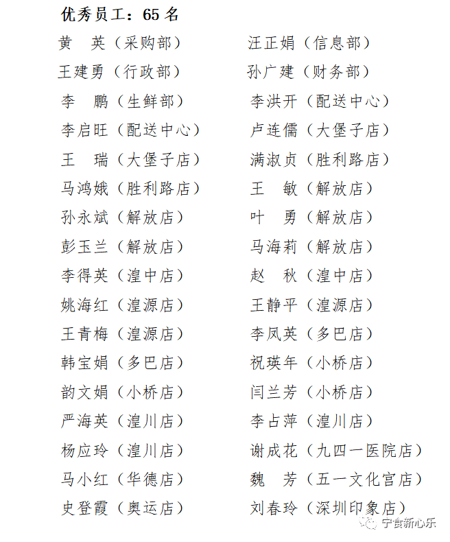 宁食新心乐营运部经理王保安宣读门店绩效达成奖励决定