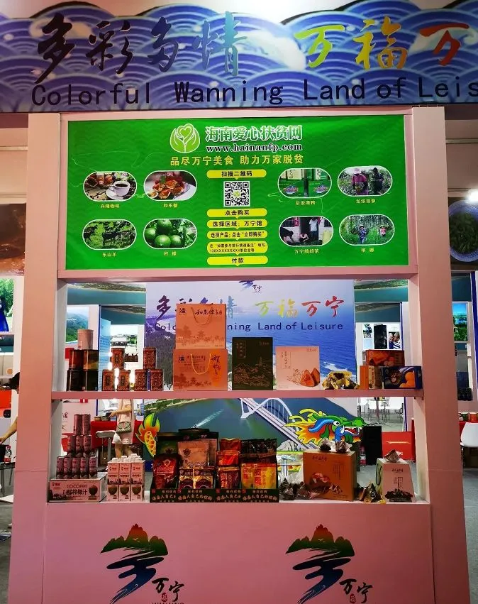 为加大万宁特色旅游商品的营销推广力度,全面展示万宁旅文融合发展成果,万宁市旅文局在活动现场搭建形象馆,组织兴隆原产地有机咖啡、海南尚南文化旅游产业投资有限公司及爱心小椰壳管理有限公司参展。展馆中还设置了万宁扶贫商品展示销售区,对和乐粽子、雅利槟榔、鹧鸪茶、亚马逊食品、旺奇食品、太阳河咖啡等系列扶贫商品近30多个品种进行展示,以加大我市旅游扶贫力度,不断扩宽扶贫商品销售渠道,丰富的特色商品吸引了广大国内外市民游客。