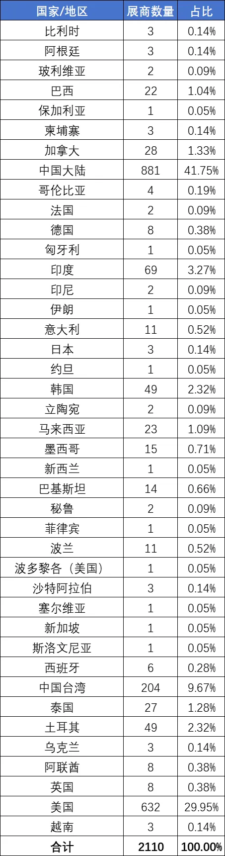 1、本展会展商名录信息均来自合规公开渠道(如参展企业在展会官网或会刊系统自行主动申请公开的信息等),我们仅对信息进行收集和汇总。