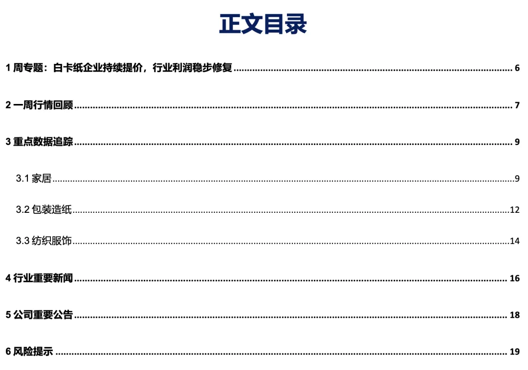 1 重要提示:本文内容节选自华安证券研究所已发布报告:《行业周报:白卡纸企业持续提价,行业利润稳步修复》(发布时间:20260202),具体分析内容请详见报告。若因对报告的摘编等产生歧义,应以报告发布当日的完整内容为准。分析师:徐偲(S0010523120001),余倩莹(S0010524040004)。